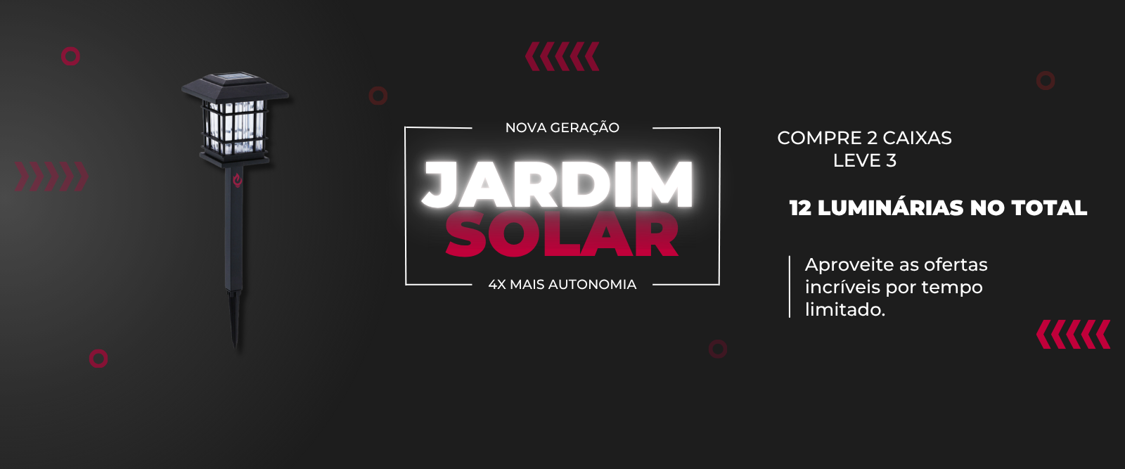 Nova geração das Luminárias Jardim Solar com pilhas Elgin recarregáveis de alta performance e durabilidade APROVEITE PROMOÇÃO COMPRE 2 CAIXAS LEVE 3